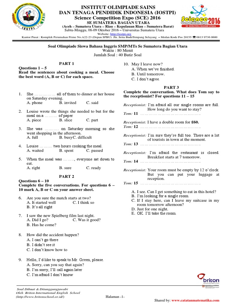 Most Popular Contoh Soal Olimpiade Bahasa Inggris Tingkat Smp Iwdyoung from reader016.staticloud.net Maybe you would like to learn more about one of these? Check spelling or type a new query. We did not find results for: Olimpiade bahasa inggris smp 2020.